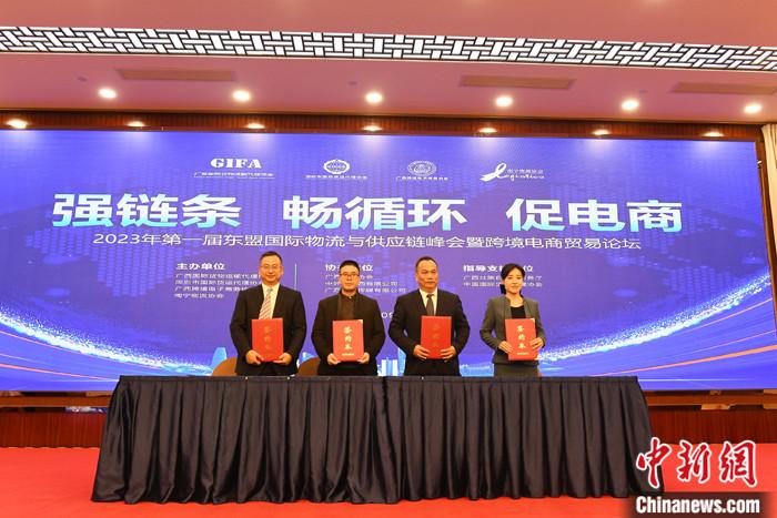 中新社南寧3月9日電 (記者 林浩)“今年,隨著《區(qū)域全面經(jīng)濟(jì)伙伴關(guān)系協(xié)定》(RCEP)深入實(shí)施,跨境電商業(yè)務(wù)加快發(fā)展,廣西與東盟物流量有望迎來增長,我們將引導(dǎo)更多會員企業(yè)布局廣西,搶灘東盟市場?!?月9日,中國國際貨運(yùn)代理協(xié)會副會長兼秘書長李志民說。圖為論壇現(xiàn)場舉辦相關(guān)合作簽約儀式。 中新社記者 林浩 攝當(dāng)天,202